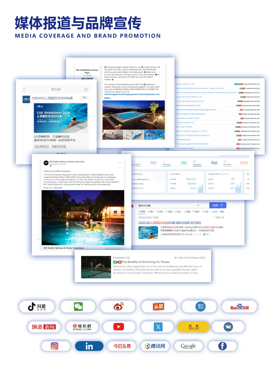 CSE組委會在線上推廣方面采取了多元化策略,依托SEO優化、SEM廣告投放、朋友圈投放、EDM郵件、短信、電話邀請等強大工具,攜手媒體平臺,精心構建了一個內容豐富、傳播力強的網絡。通過微信公眾號、抖音、視頻號等國內社交平臺,以及Facebook、Instagram、LinkedIn、Google等海外渠道,CSE不僅極大地提升了品牌自媒體的曝光度,還以創意十足的形式展現了展會亮點,精確鎖定了專業買家的目光,共同繪制了游泳SPA行業的新藍圖。同時,利用線上平臺推動現場商務配對、創新產品展示區等活動,有效打通了內外站流量,實現了人、貨、場的精確匹配,為品牌與產品的快速成長提供了強大助力,并持續性地促進了銷售轉化。